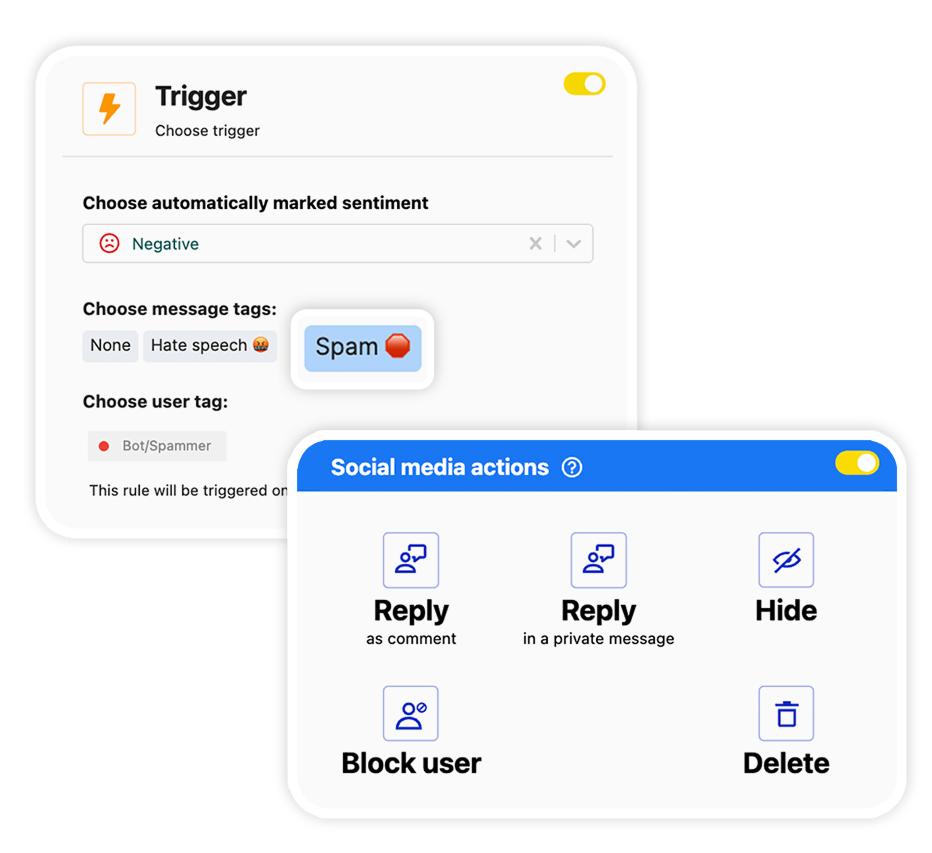 Protect your community and your ROI with AI-driven moderation. Make your social media care team 3x faster by cutting repetitive work.