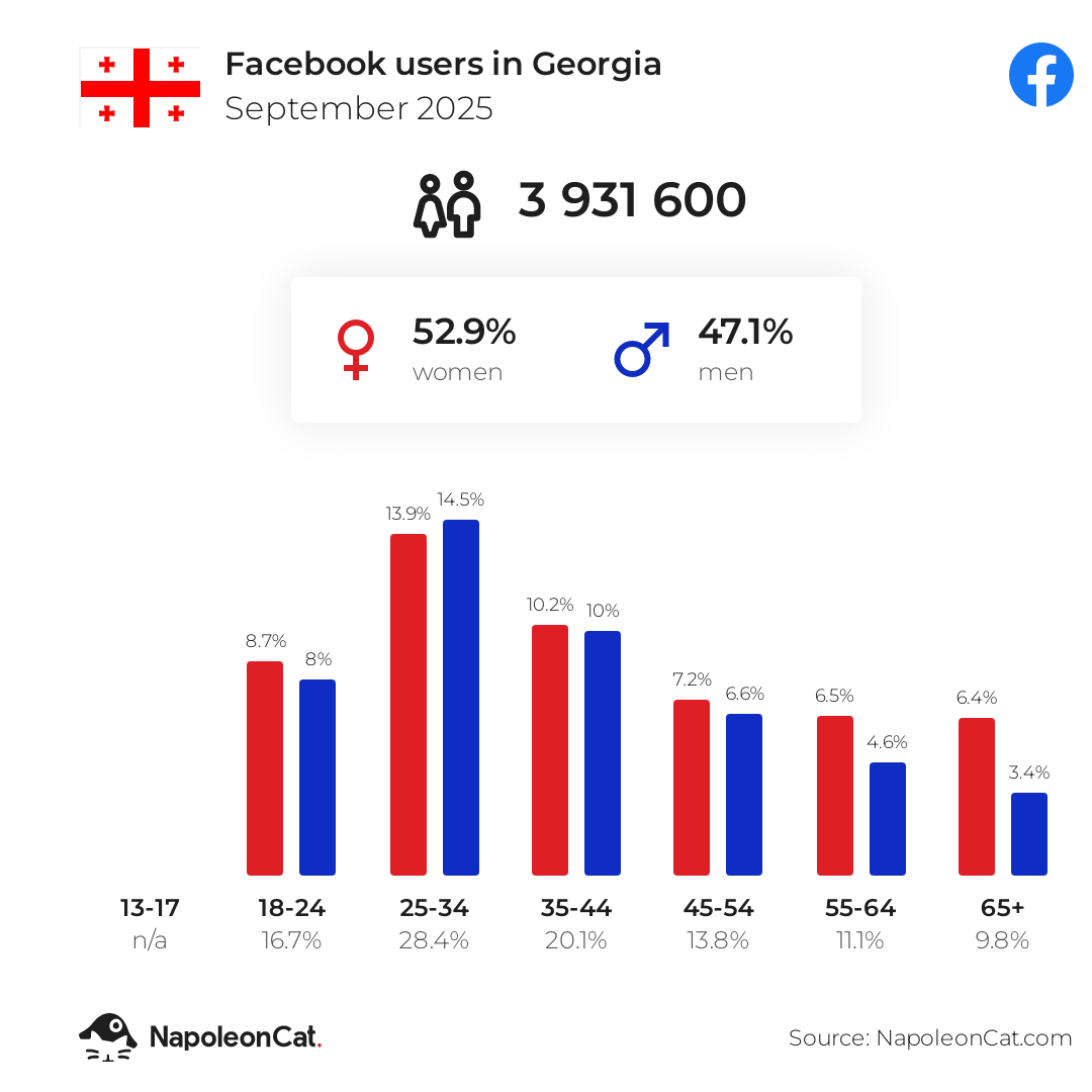 There were 3 931 600 Facebook users in Georgia in September 2025.