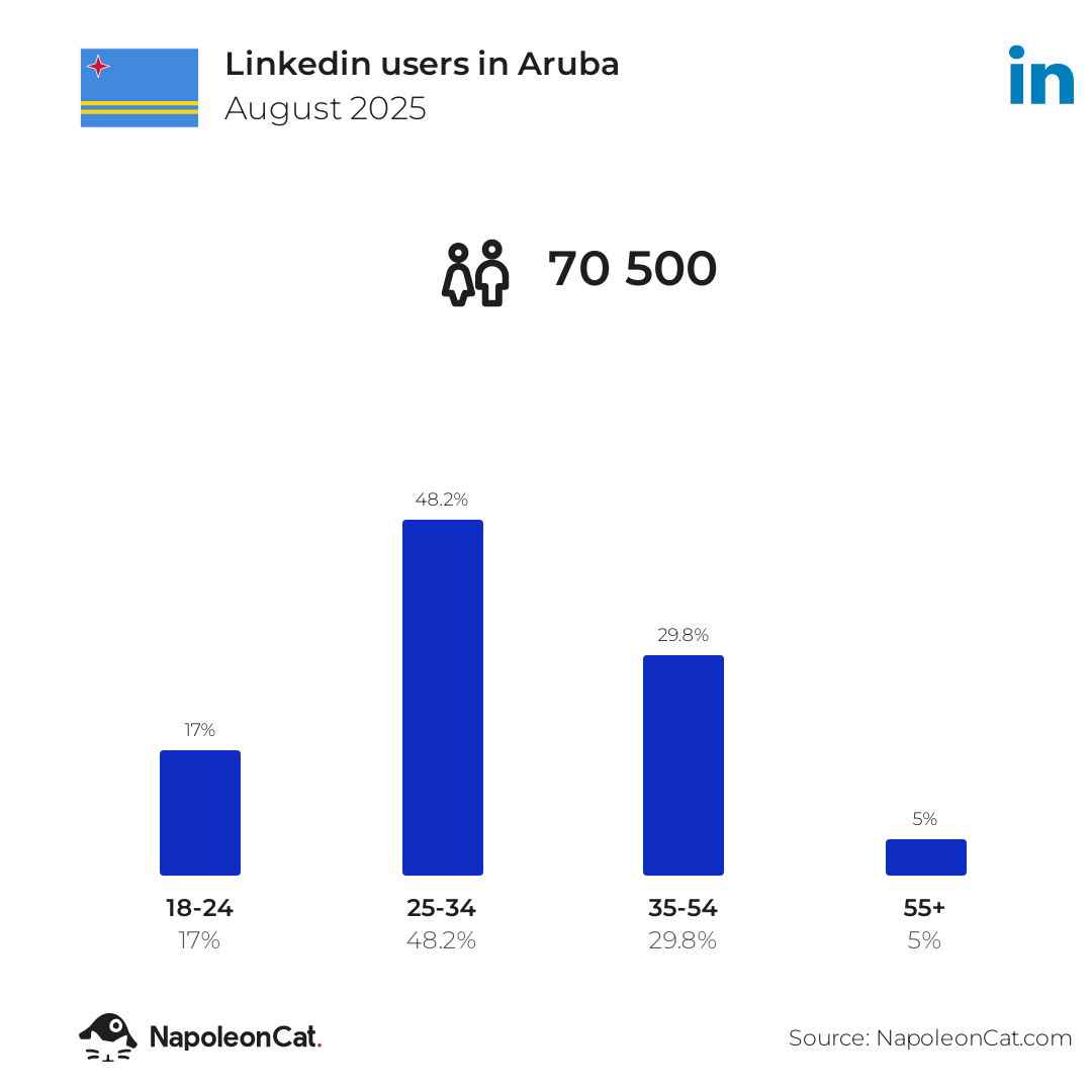 There were 70 500 Linkedin users in Aruba in August 2025, which accounted for 61.3% of its entire population.