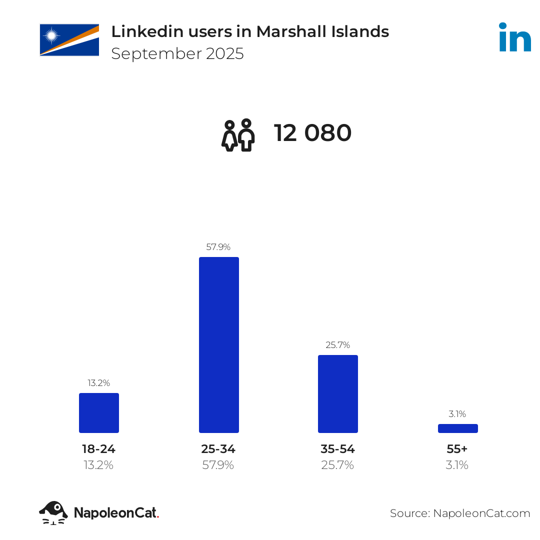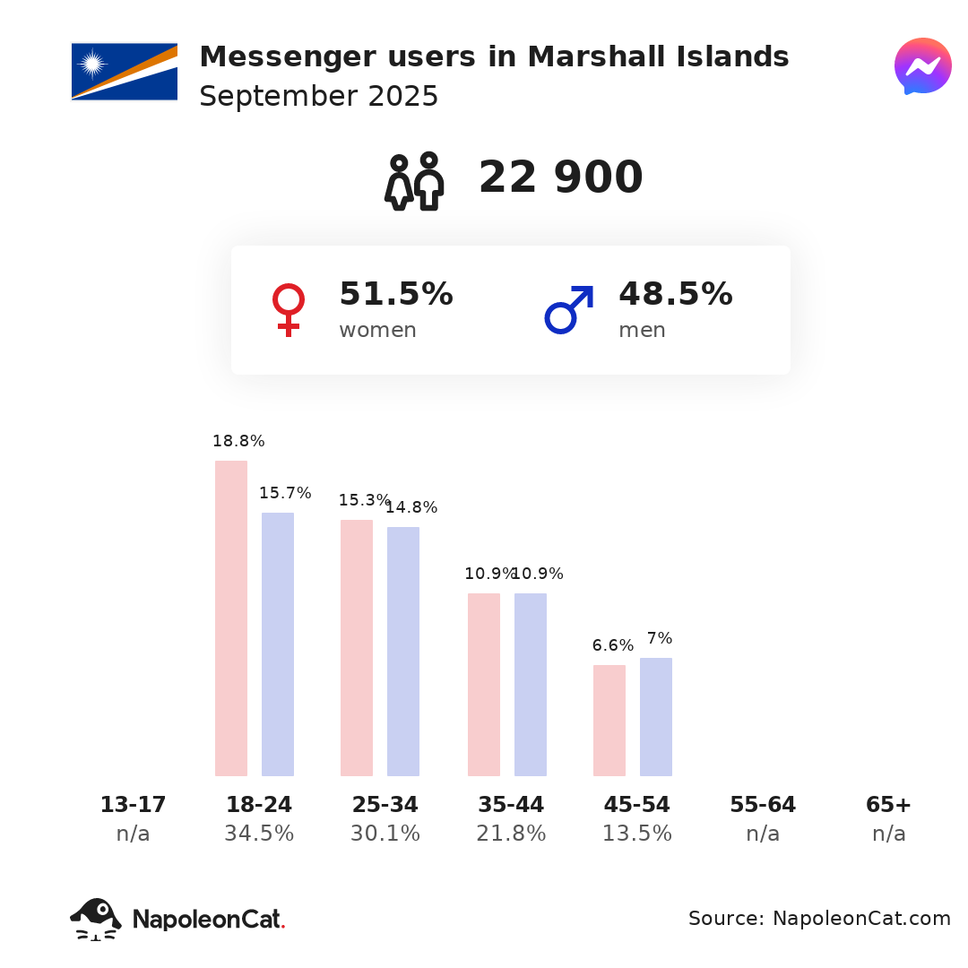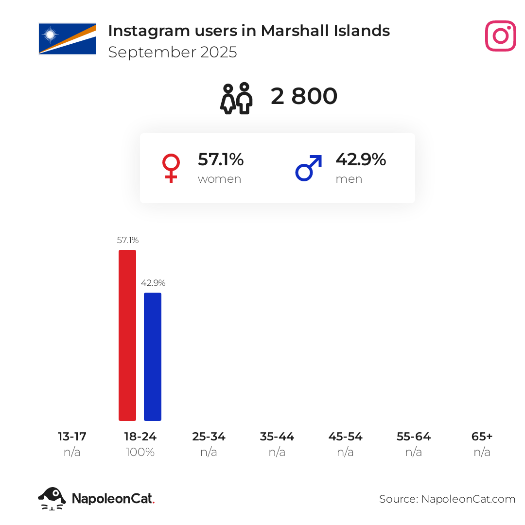 There were 25 200 Facebook users in Marshall Islands in September 2025, which accounted for 43.4% of its entire population.